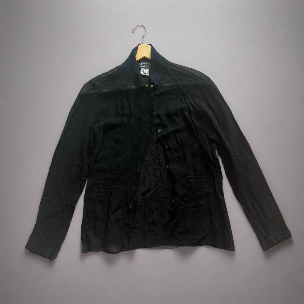 חולצה מכופתרת ארוכה שחורה שקפקפה ghost