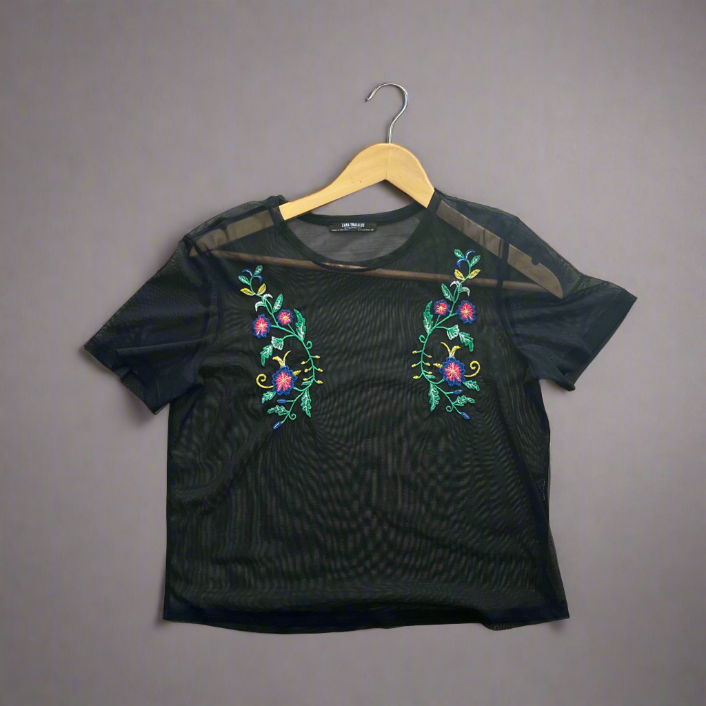 חולצה שחורה שקופה עם דיטיילס ריקמה